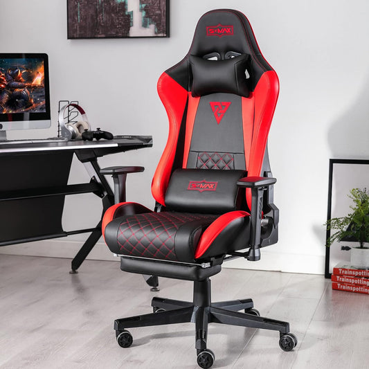 Gaming Chair with Footrest Racing Office Computer Ergonomic Video Game Chairs PU Leather Headrest...